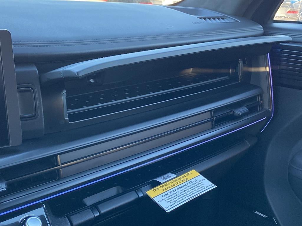 - Radio: AM/FM/HD Bose Premium Audio System -inc: 12 speakers including subwoofer, external amplifier, 12.3" wide touchscreen, Apple CarPlay and Android Auto, Bluetooth® hands-free w/wireless audio streaming, dynamic voice recognition, USB connectivity, SiriusXM, Blue Link+ connected car system, over-the-air updating capability, navigation system including traffic flow w/incident data via HD Radio (HERE) and rear seat quiet mode