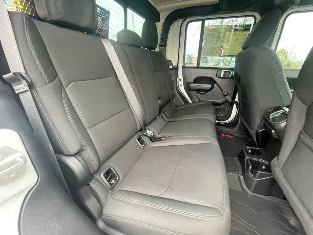 New Tires, Gladiator Sport, 4D Crew Cab, 3.6L V6 24V VVT, 8-Speed Automatic, 4WD, Bright White Clearcoat, Black w/Cloth Low-Back Bucket Seats or Leather Trimmed Bucket Seats (YL), 240 Amp Alternator, 3.73 Rear Axle Ratio, 4-Wheel Disc Brakes, 4G LTE Wi-Fi Hot Spot, 8 Speakers, ABS brakes, AM/FM radio, Apple CarPlay, Apple CarPlay/Android Auto, Black 3-Piece Hard Top, Brake assist, Class IV Receiver Hitch, Cloth Low-Back Bucket Seats, Compass, Delay-off headlights, Driver door bin, Driver vanity mirror, Emergency communication system, Freedom Panel Storage Bag, Front anti-roll bar, Front Bucket Seats, Front Center Armrest w/Storage, Front fog lights, Front reading lights, Google Android Auto, GPS Antenna Input, Heavy-Duty Engine Cooling, Integrated Center Stack Radio, Integrated roll-over protection, Integrated Voice Command w/Bluetooth®, Low tire pressure warning, Normal Duty Suspension, Outside temperature display, ParkView Rear Back-Up Camera, Passenger door bin, Passenger vanity mirror, Quick Order Package 23B Sport, Quick Order Package 24B Sport, Radio data system, Radio: Uconnect 4 w/7 Display, Rear anti-roll bar, Rear reading lights, Rear Sliding Window, Rear Window Defroster, Speed control, Split folding rear seat, Steering wheel mounted audio controls, Tachometer, Telescoping steering wheel, Tilt steering wheel, Trailer Hitch Zoom, Trailer Tow Package, Trip computer, USB Host Flip, Variably intermittent wipers, Wheels: 17 x 7.5 Black Steel Styled.